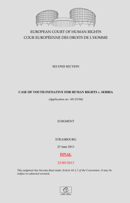 Inicijativa je podnela predstavku, po članu 6. i članu 10. Konvencije za zaštitu ljudskih prava i osnovnih sloboda, zbog odbijanja Bezbednosno-informativne agencije Srbije da dostavi određene informacije u vezi sa brojem prisluškivanih lica, kao i zbog ignorisanja pravosnažne i obavezujuće odluke Poverenika za informacije od javnog značaja.