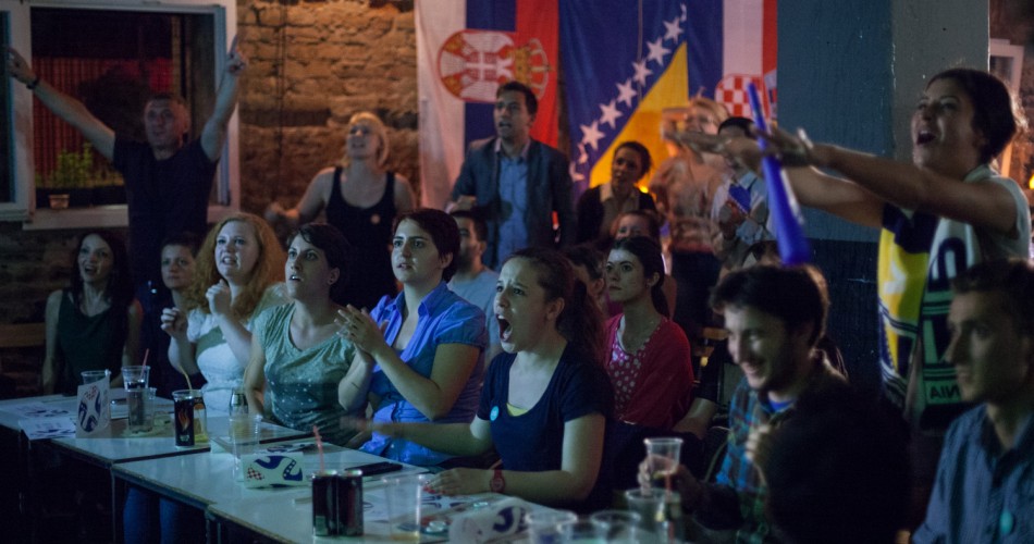 Nekoliko nas se već oko devet sati okupilo u KC Gradu nameštajući stolove bliže ekranu i iščekujući prve goste. Nije prošlo više od petnaest minuta kada se pojavila grupa meni nepoznatih ljudi i zauzela prva mesta. Suzdržavala sam se da im ne priđem i ne kažem da utakmica počinje za 45 minuta, da znaju da može biti buka, pa da, ukoliko to žele pređu da sede u bašti. Bila sam ubeđena da su slučajni prolaznici koji su svratili na piće.