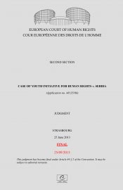 Inicijativa je podnela predstavku, po članu 6. i članu 10. Konvencije za zaštitu ljudskih prava i osnovnih sloboda, zbog odbijanja Bezbednosno-informativne agencije Srbije da dostavi određene informacije u vezi sa brojem prisluškivanih lica, kao i zbog ignorisanja pravosnažne i obavezujuće odluke Poverenika za informacije od javnog značaja.