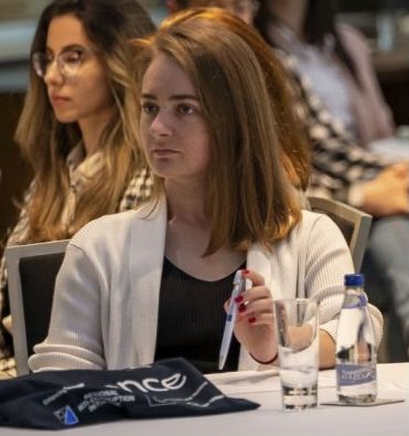 Učesnike konferencije “Kako stati na put poricanju genocida u Srebrenici?” na početku su pozdravili zamenica šefa misije Ambasade Nemačke Dorothea Gieselmann i programski direktor Inicijative mladih za ljudska prava Ivan Đurić.