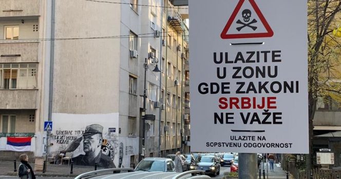Danas su postavljene table upozorenja za građane da je deo Vračara, ugao ulica Njegoševa i Alekse Nenadovića deo grada gde ne vlada zakon nego huligani.