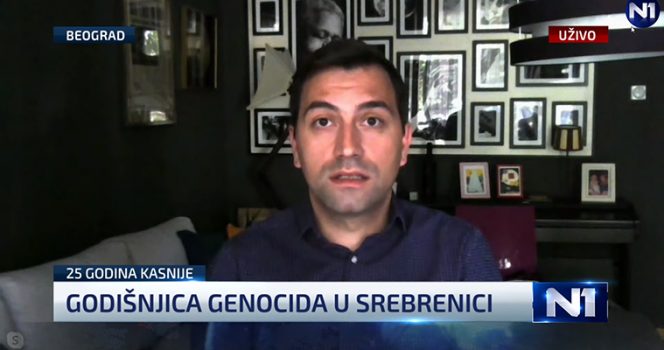 “Dvadeset pet godina kontinuiran je zvanični nacionalistički narativ u Srbiji, on se samo ojačava, zatvoren je u sebe i sva ova istina, bez obzira što je utvrđena pred međunarodnim sudovima i što je ceo civilizovani svet vidi na jedan način, Srbija je žrtva nacionalističkog narativa koji je stavlja na suprotnu stranu od međunarodnog prava i razvijenog sveta”, ocenio je programski direktor Inicijative mladih za ljudska prava Ivan Đurić gostujući na televiziji N1 povodom 25. godišnjice genocida u Srebrenici.