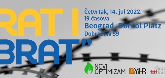 Novi optimizam i Inicijativa mladih za ljudska prava uz podršku Građanskih inicijativa organizuju javnu tribinu pod nazivom RAT I “BRAT“ koja će se baviti ruskom agresijom na Ukrajinu i dominatnim narativom koji je u Srbiji prisutan od samog početka ovog sukoba.