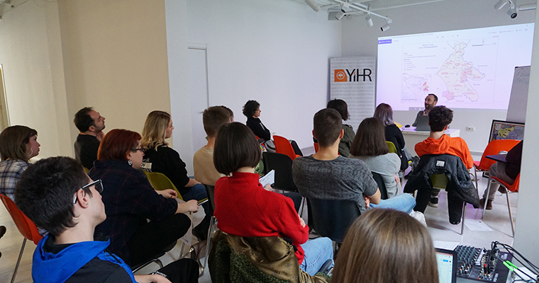 The first day of the study visit began at the YIHR office, where Dušan Jovanović gave a lecture about the genocide in Srebrenica to the participants from Novi Sad, Zrenjanin, Vrnjačka Banja, Čačak, Pančevo and Belgrade.
