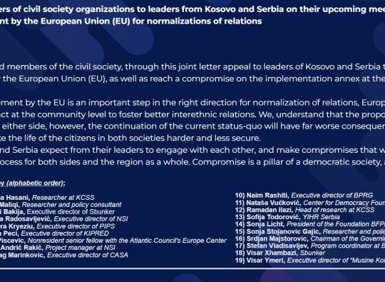 Witnessing that Kosovo-Serbia relations are not improving despite the ongoing dialogue process, we express our deep concern for the deterioration of the situation on the ground and in the daily lives of citizens. There is a need to safeguard and protect the human rights of minority groups in Serbia and Kosovo.