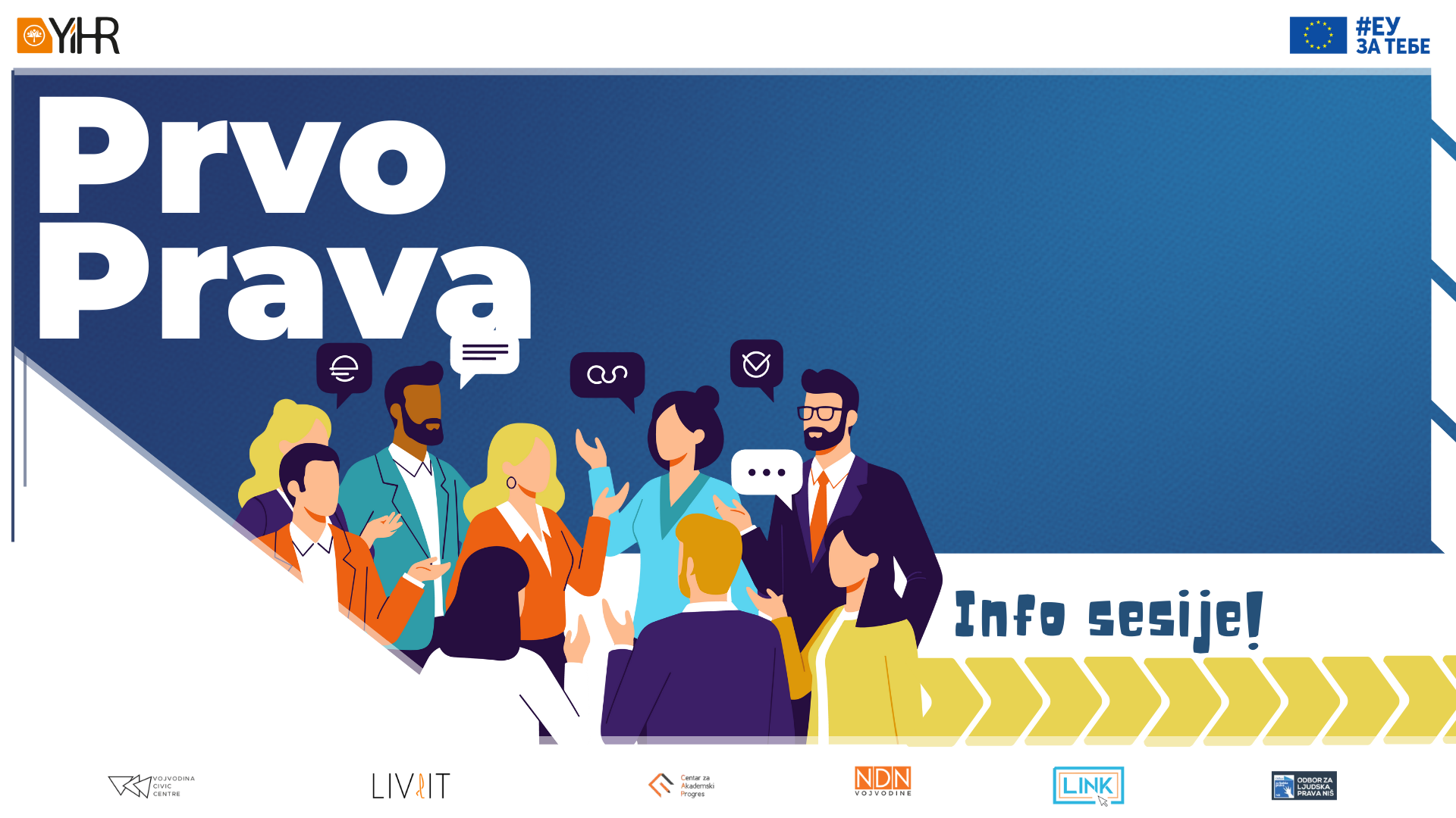 Inicijativa mladih za ljudska prava sprovodi projekat „Prvo Prava”, uz finansijsku podršku Evropske unije, koji ima za cilj da ojača participativnu demokratiju i podrži Srbiju na putu ka članstvu u EU podizanjem kapaciteta organizacija civilnog društva sa posebnim fokusom na mlade i marginalizovane grupe. Ovaj projekat implementiraju Inicijativa mladih za ljudska prava, Nezavisno društvo novinara Vojvodine, Odbor za ljudska prava iz Niša, Link iz Sombora, Livrit iz Preševa, Vojvođanski građanski centar i Centar za akademski progres iz Novog Pazara.