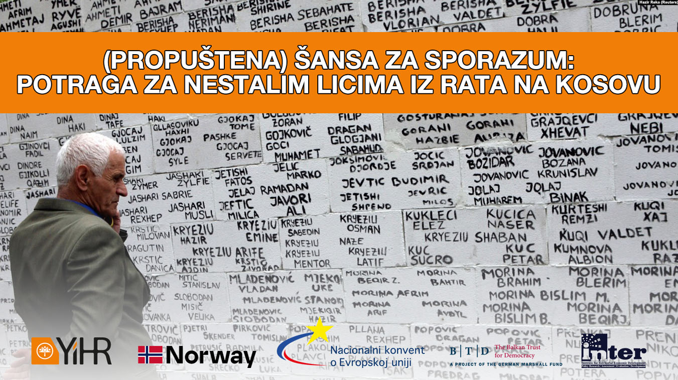 Pozivamo vas na debatu “(Propuštena) šansa za sporazum: Potraga za nestalim licima iz rata na Kosovu” koju zajedno organizuju Inicijativa mladih za ljudska prava u Srbiji (YIHR Srbija) i Radna grupa Nacionalnog konventa za Evropsku uniju (NKEU) u Srbiji za poglavlje 35, u utorak 24. januara od 18 časova „Endžio HAB“ (Dobračina 4) u Beogradu. Radni jezik debate je srpski.