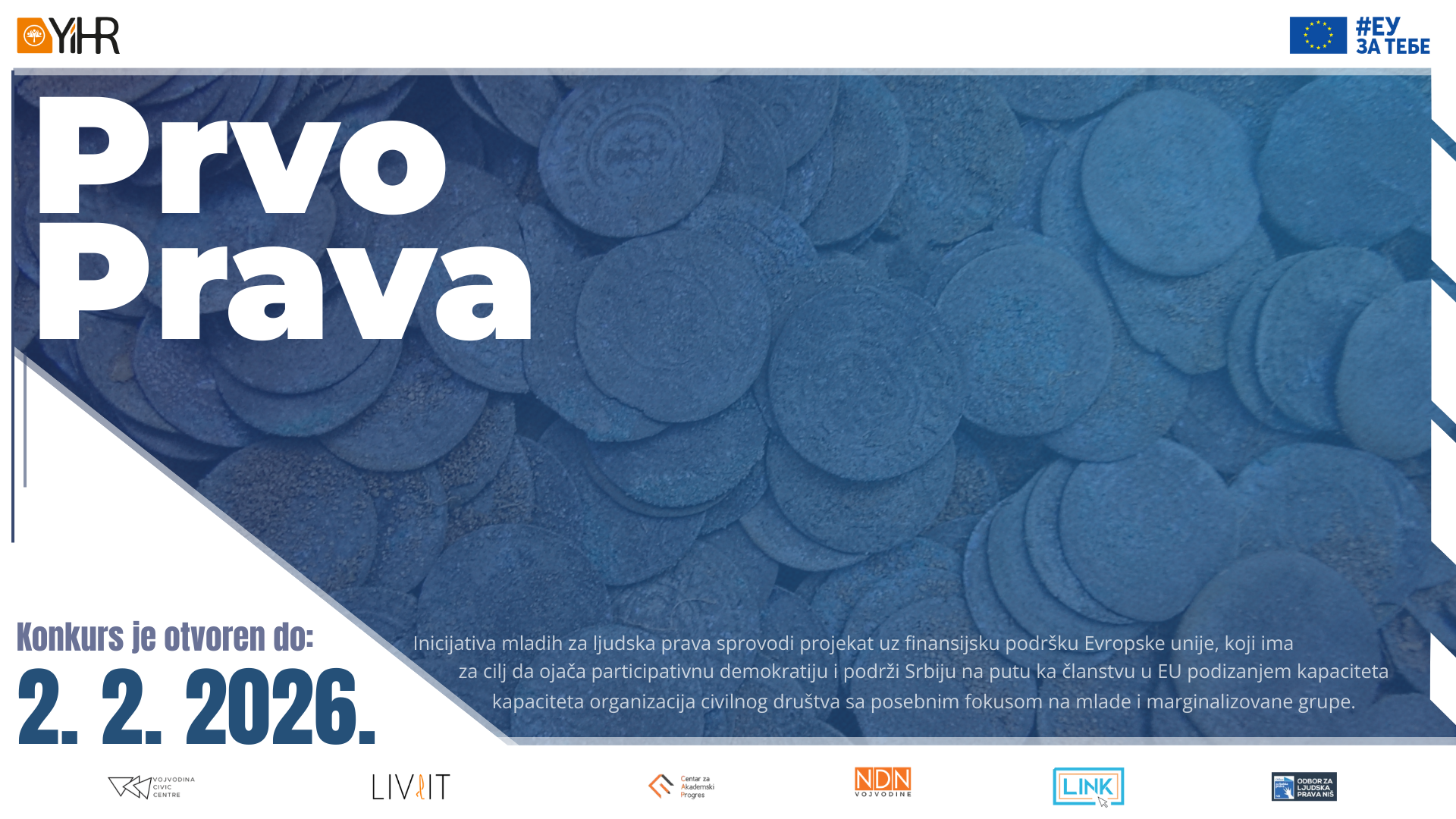 Inicijativa mladih za ljudska prava sprovodi projekat “Prvo Prava”, uz finansijsku podršku Evropske unije, koji ima za cilj da ojača participativnu demokratiju i podrži Srbiju na putu ka članstvu u EU podizanjem kapaciteta organizacija civilnog društva sa posebnim fokusom na mlade i marginalizovane grupe. Ovaj projekat implementiraju Inicijativa mladih za ljudska prava, Nezavisno društvo novinara Vojvodine, Odbor za ljudska prava iz Niša, Link iz Sombora, Livrit iz Preševa, Vojvođanski građanski centar i Centar za akademski progres iz Novog Pazara.